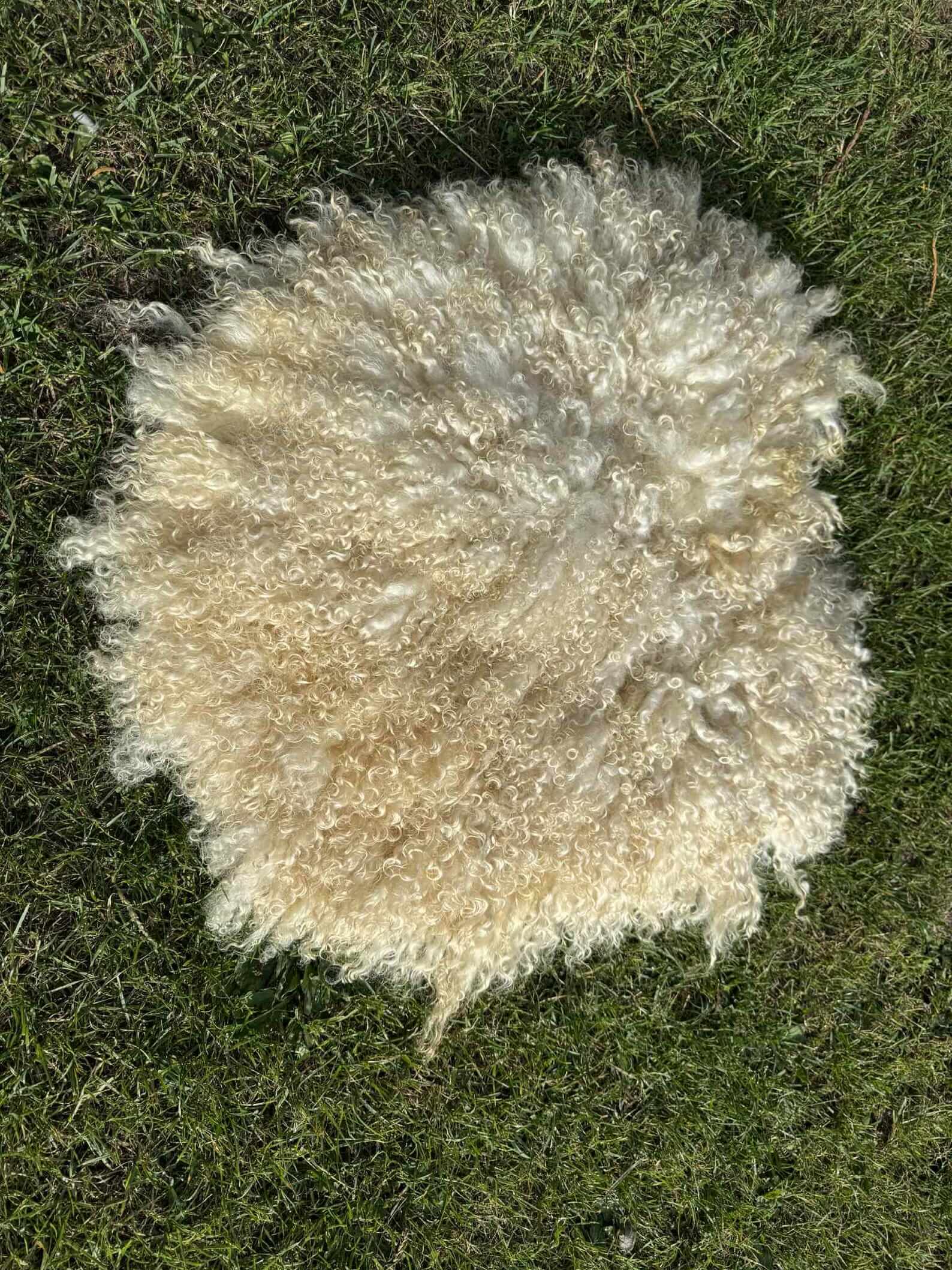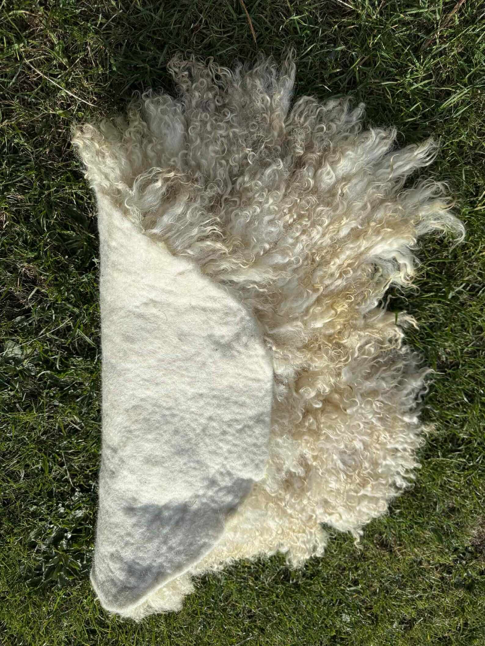 This rug is cruelty free, meaning its fully traceable back to the sheep that spent a year growing this fleece. (please note, felted fleeces online are not all fully traceable, just because it has no skin on the back like a sheepskin rug, does not mean that it did not die for meat etc )