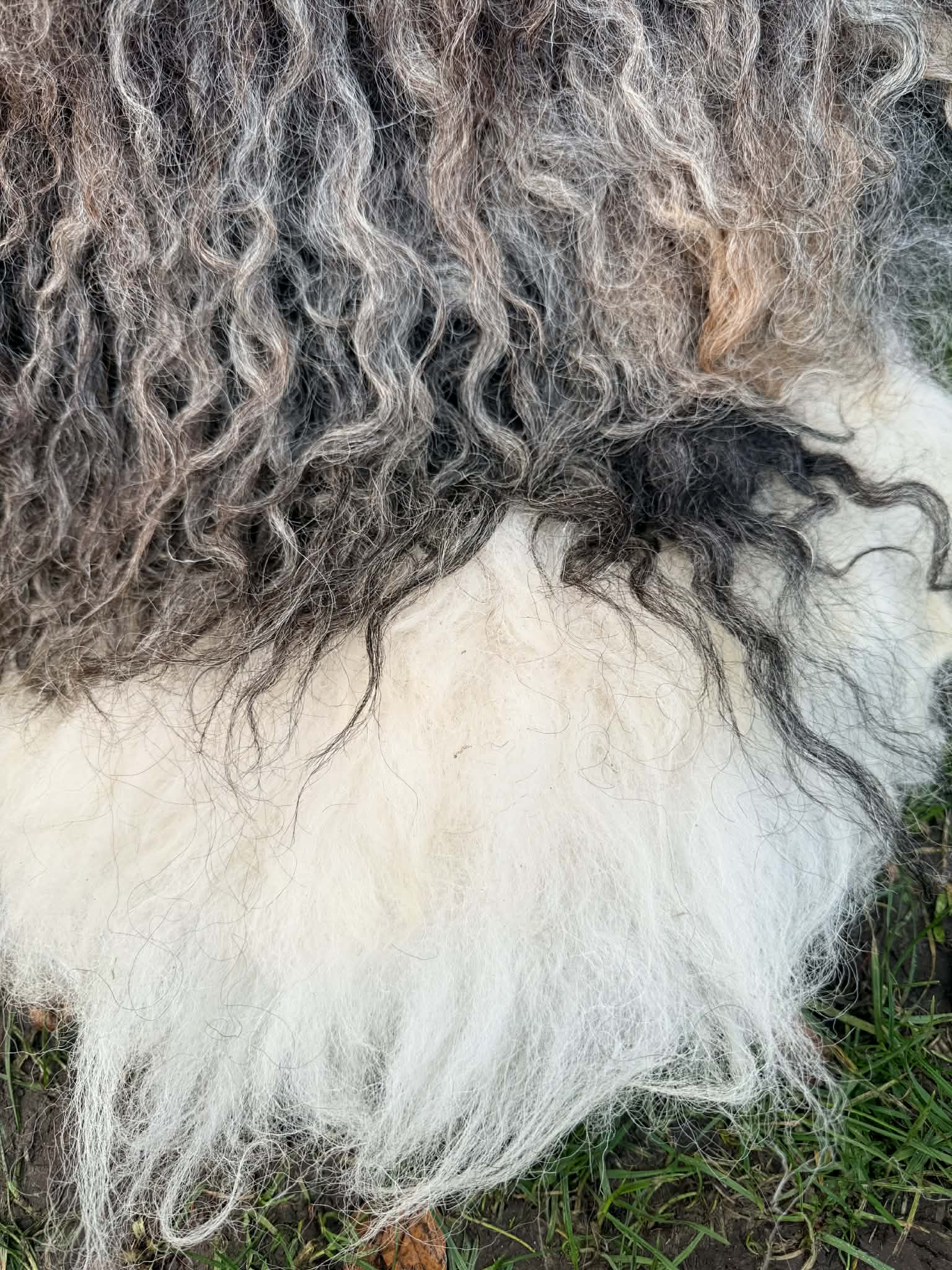 Everyear the black valais change colour, this time he has greys with a tinge of brown, very unique with a white tip