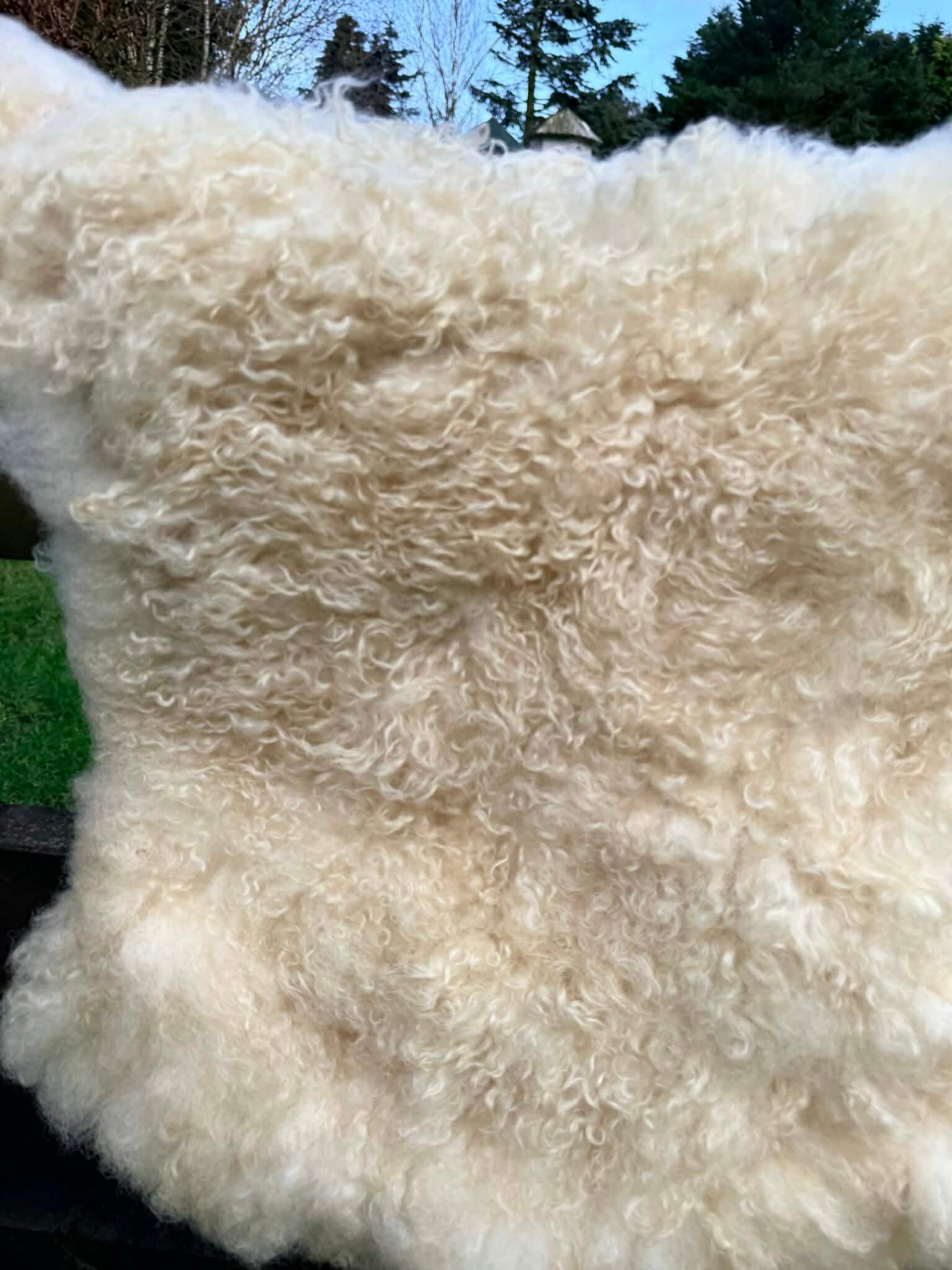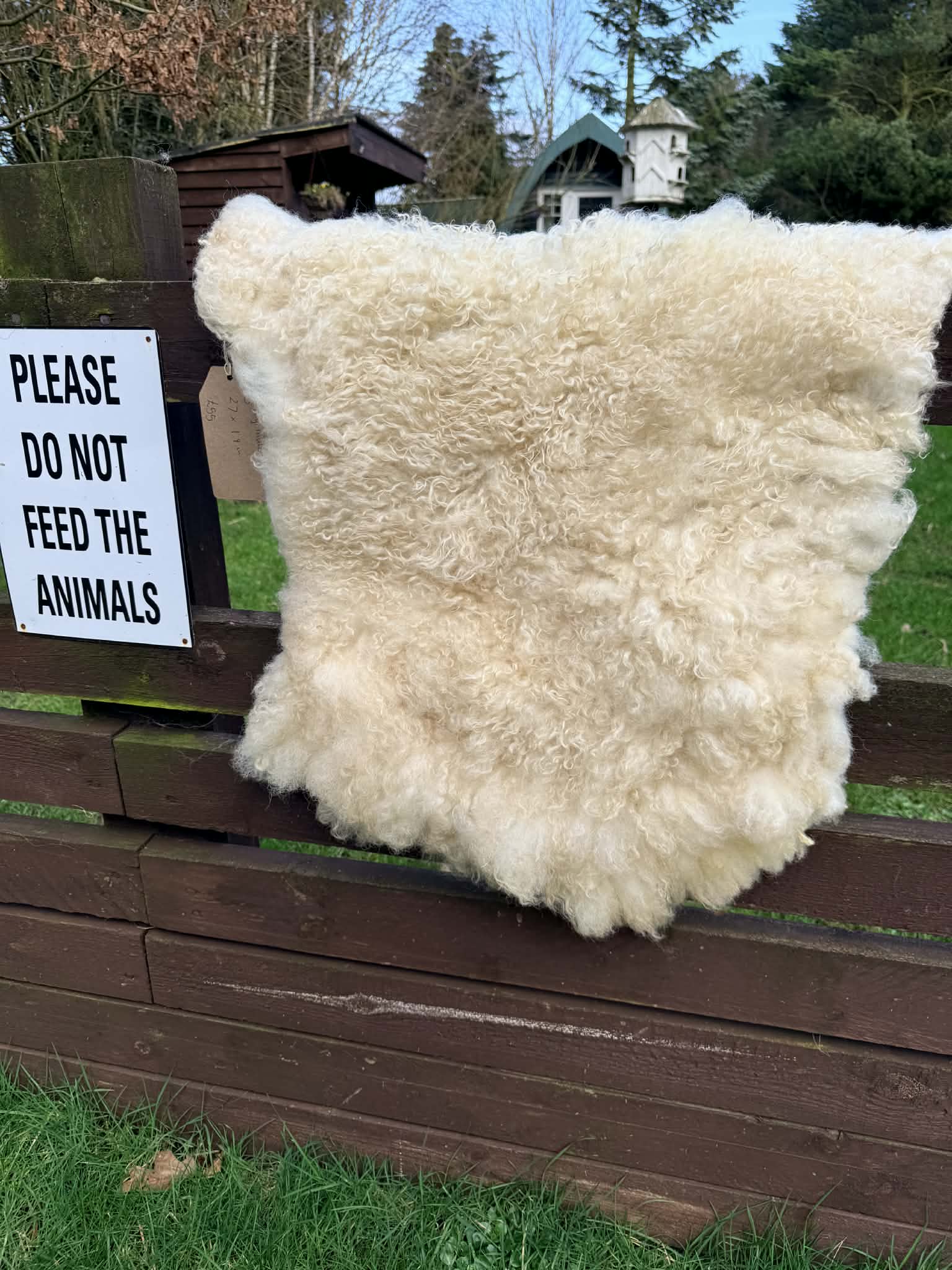 This rug is cruelty free, meaning its fully traceable back to the sheep that spent a year growing this fleece. (please note, felted fleeces online are not all fully traceable, just because it has no skin on the back like a sheepskin rug, does not mean that it did not die for meat etc )