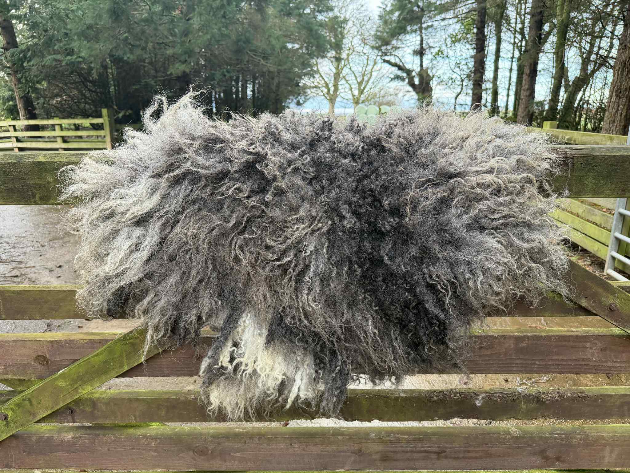 The rug is then skirted, removing as much hay etc as possible from it, along with any dirty fleece. Its prepared and then hand felted using online soap and water. The process is very labour intensive.