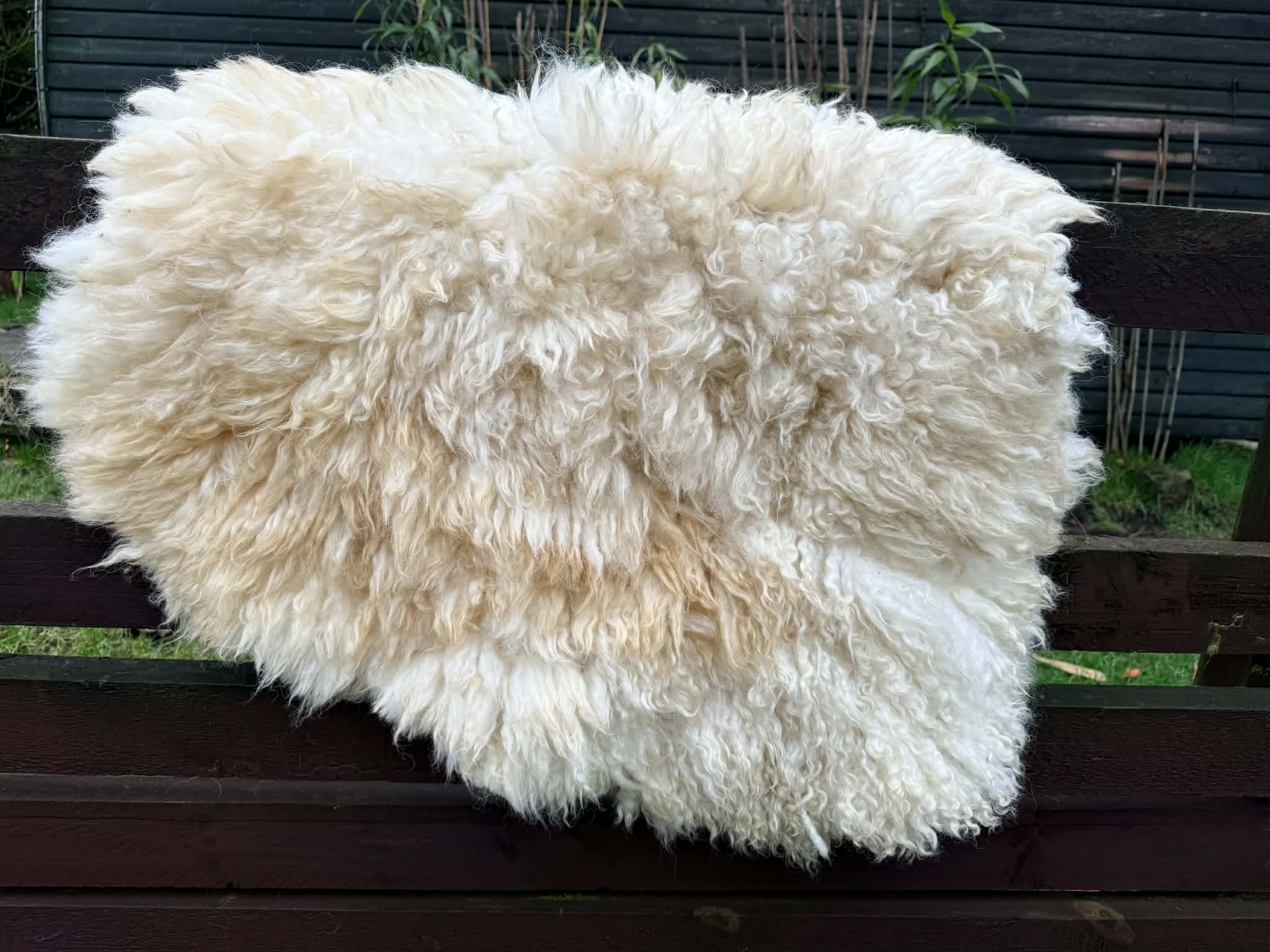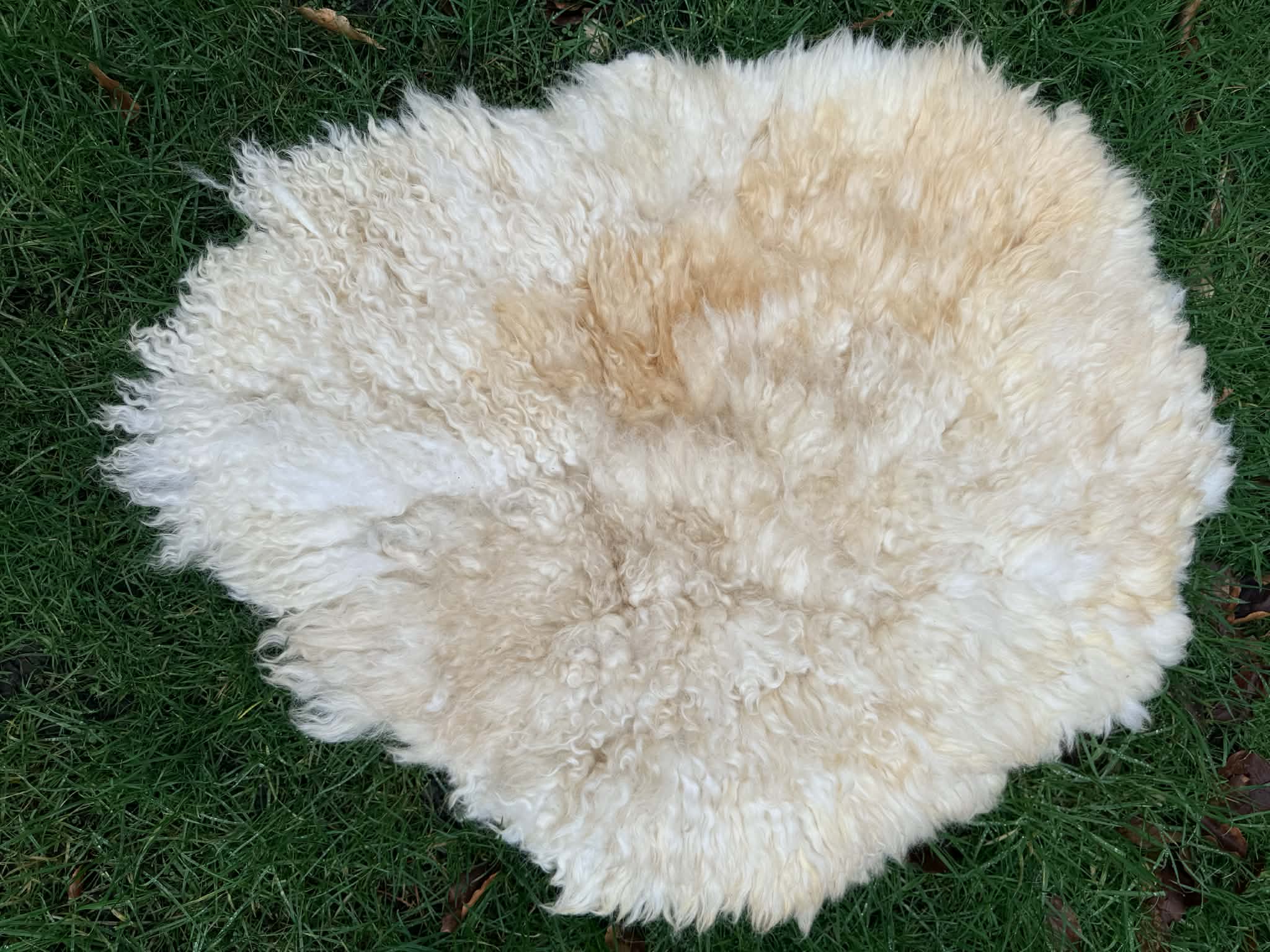 This rug is cruelty free, meaning its fully traceable back to the sheep that spent a year growing this fleece. (please note, felted fleeces online are not all fully traceable, just because it has no skin on the back like a sheepskin rug, does not mean that it did not die for meat etc )