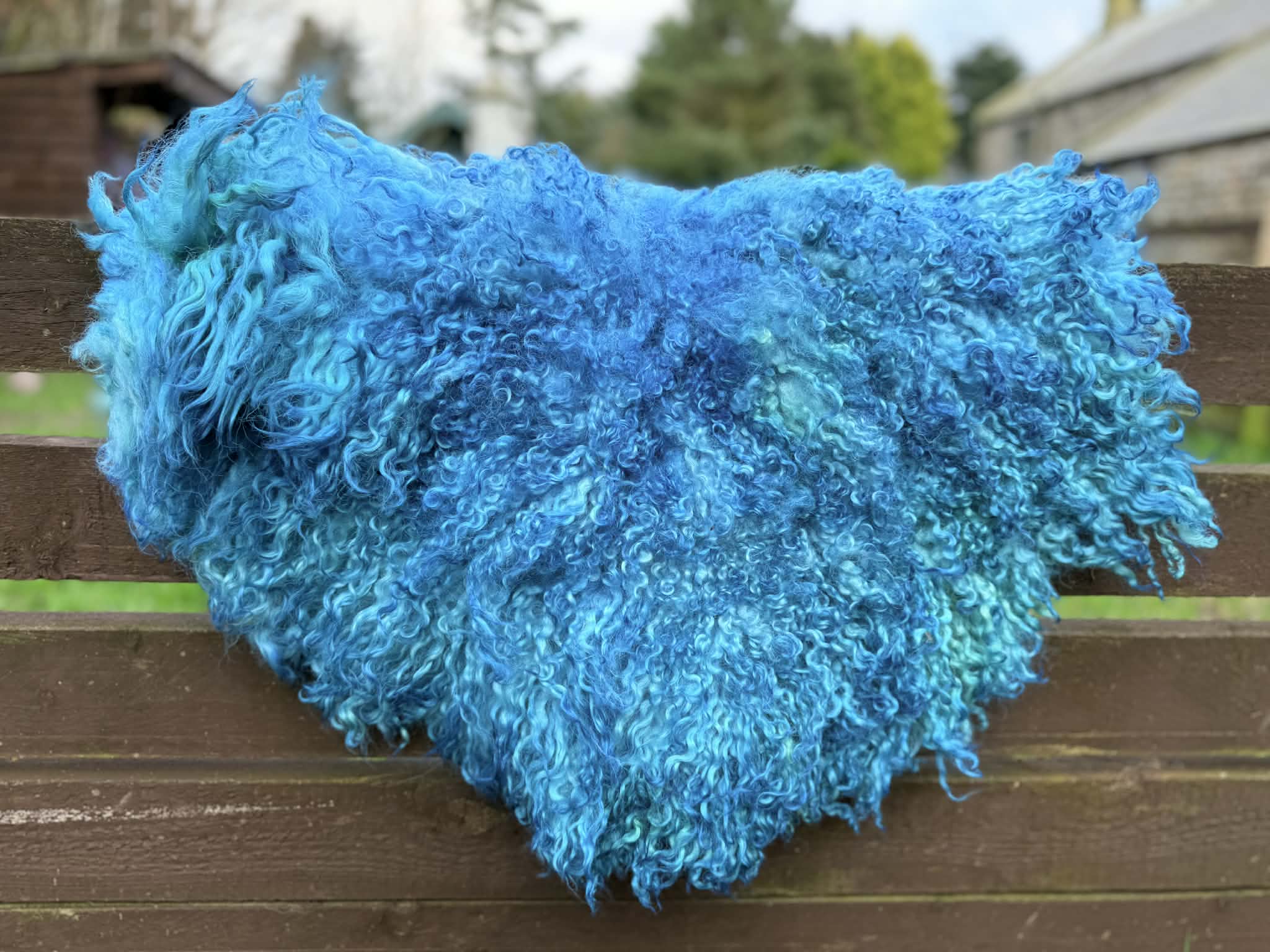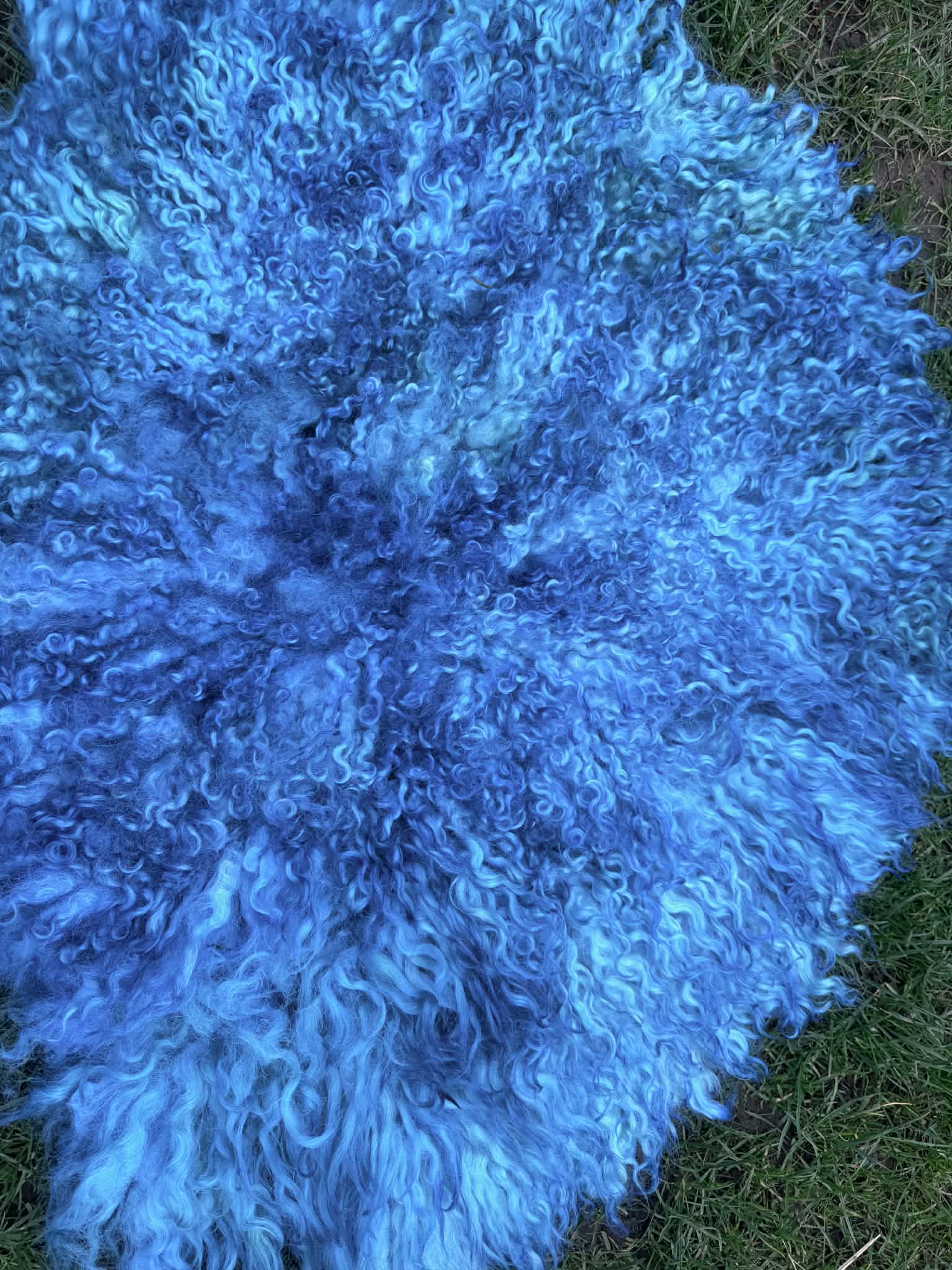 The rug is then skirted, removing as much hay etc as possible from it, along with any dirty fleece. Its prepared and then hand felted using online soap and water. The process is very labour intensive.