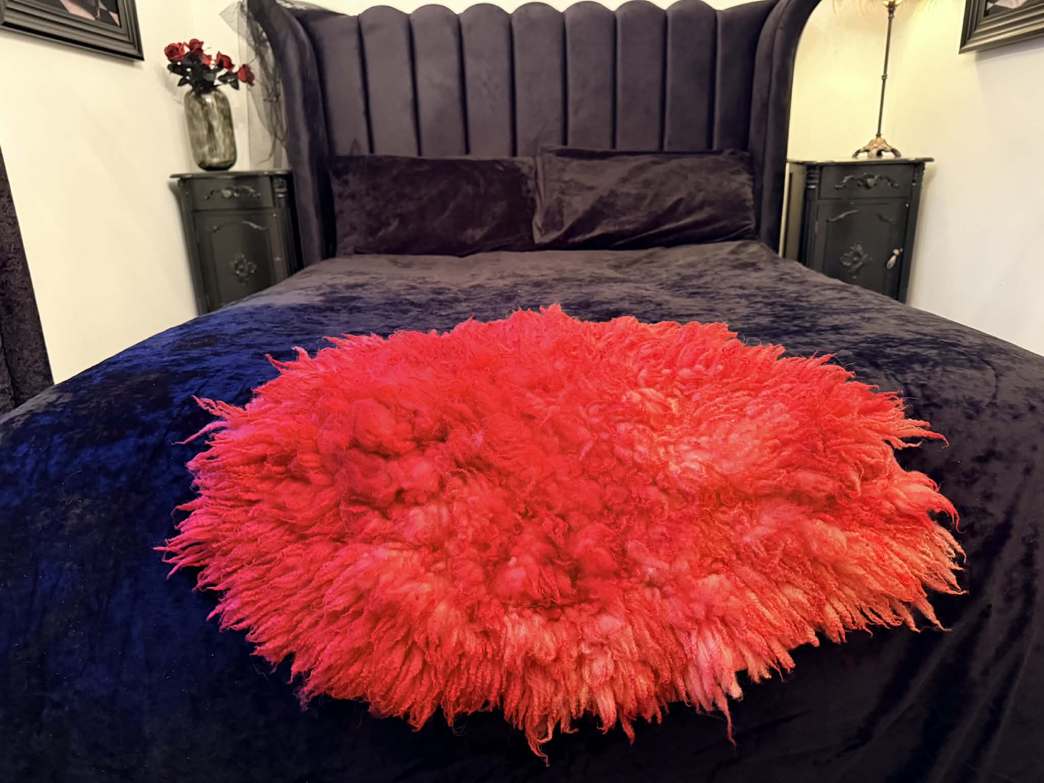 This rug is cruelty free, meaning its fully traceable back to the sheep that spent a year growing this fleece. (please note, felted fleeces online are not all fully traceable, just because it has no skin on the back like a sheepskin rug, does not mean that it did not die for meat etc )