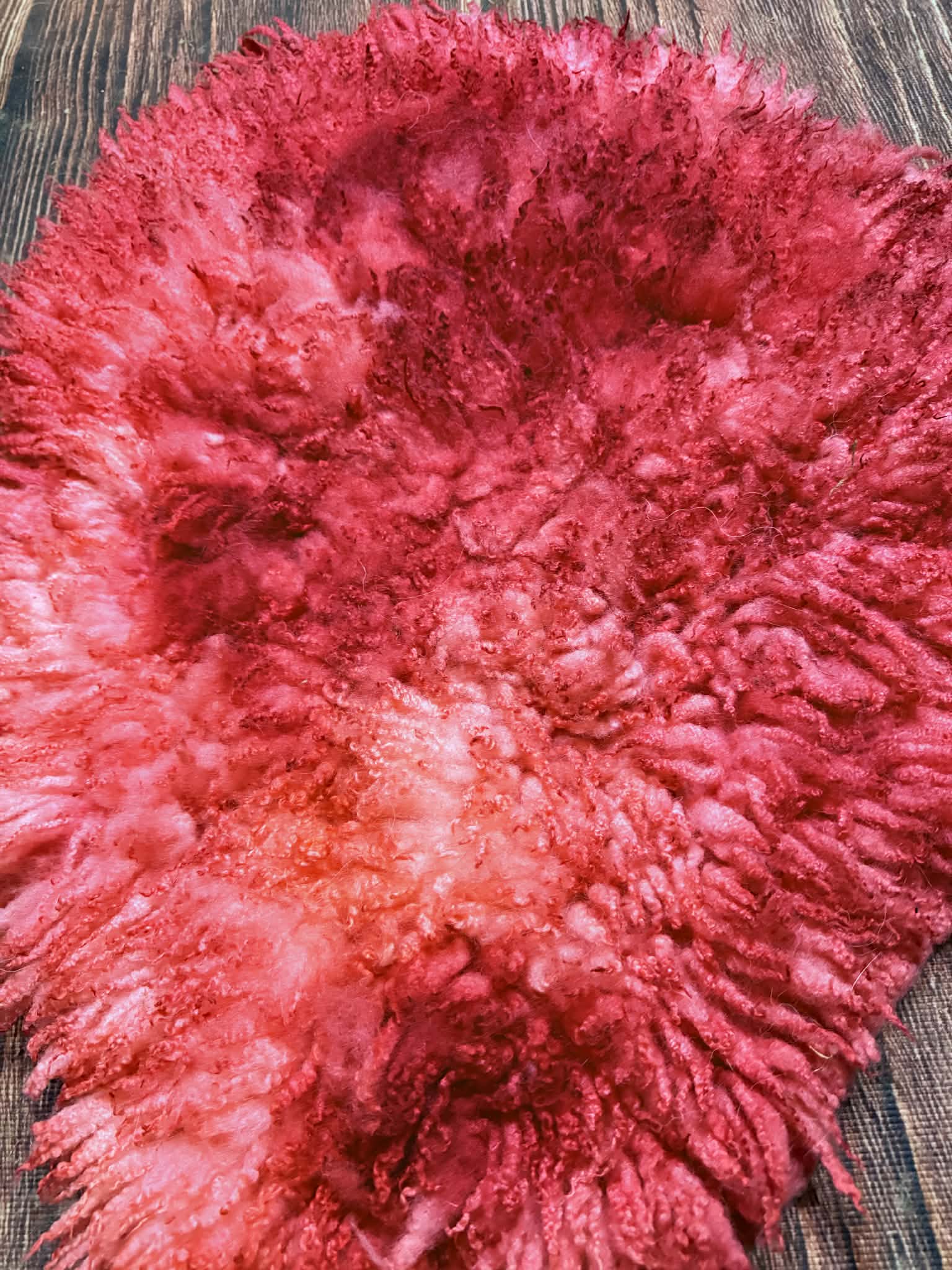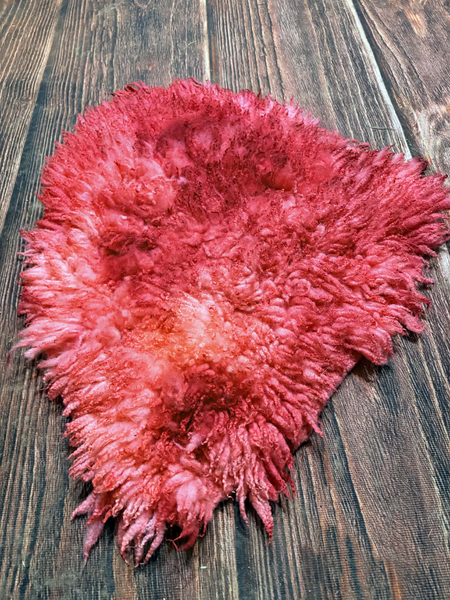 It’s a small seat pad that is wet felted, then I have hand dyed it using eco friendly dyes