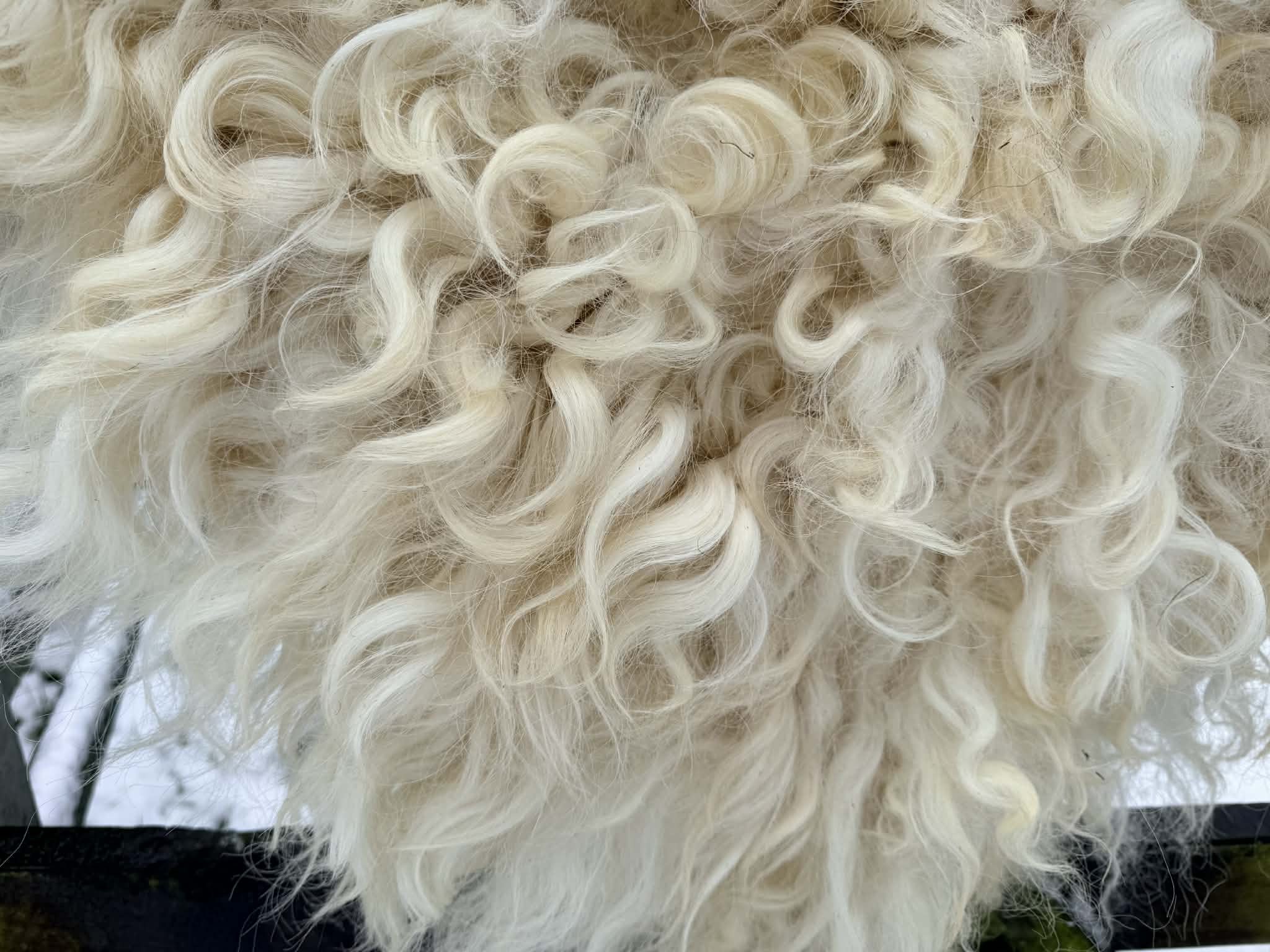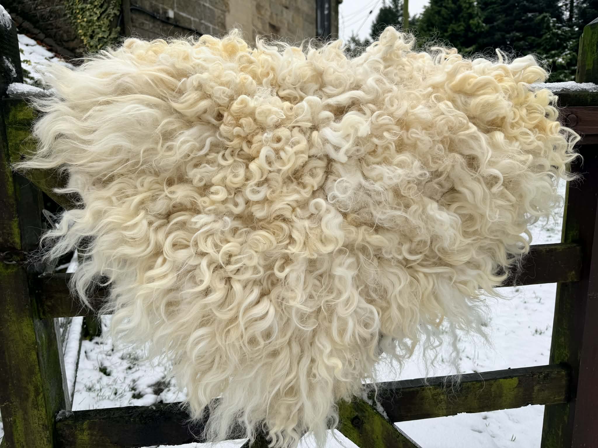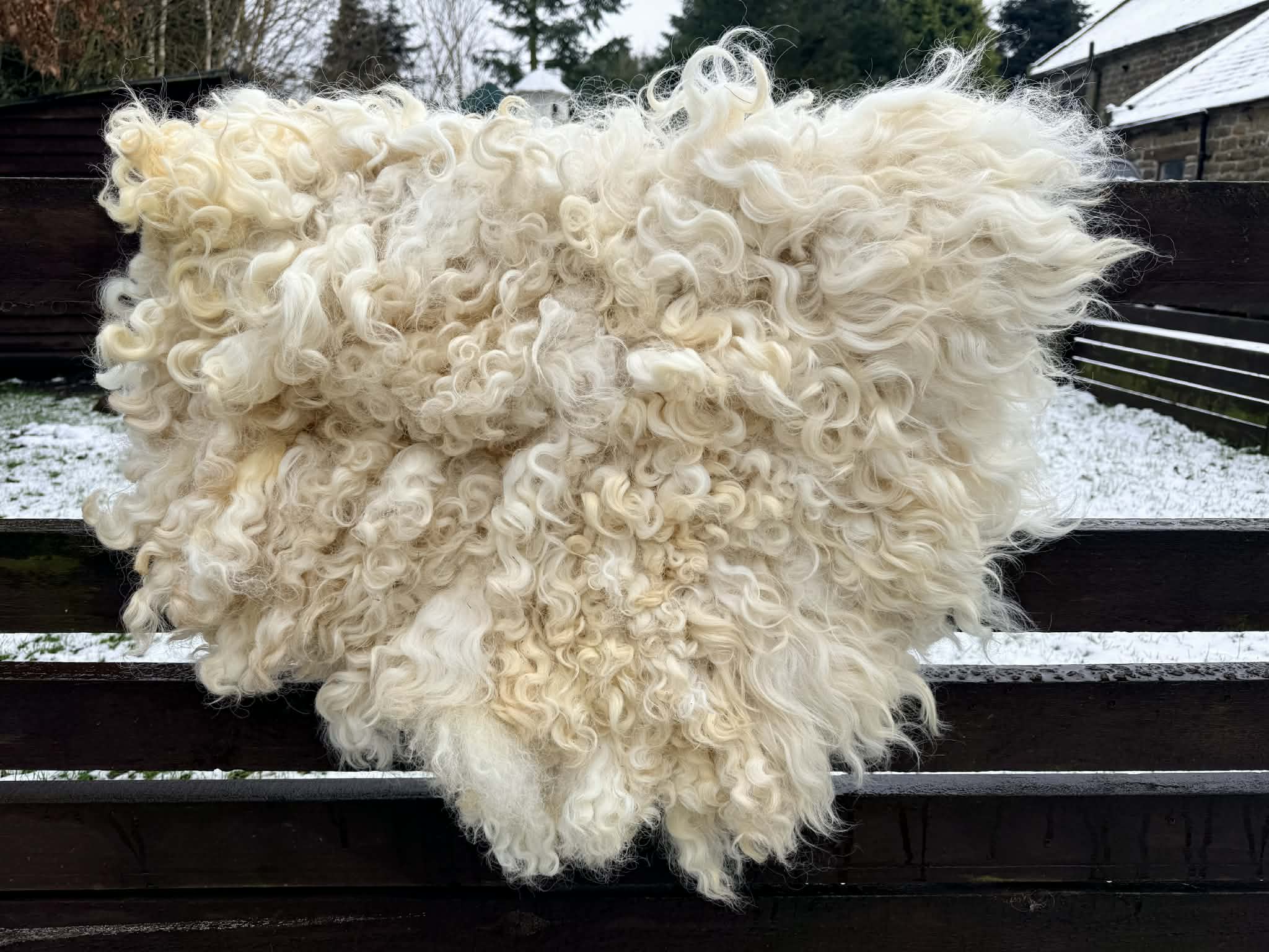 The rug is then skirted, removing as much hay etc as possible from it, along with any dirty fleece. Its prepared and then hand felted using online soap and water. The process is very labour intensive.