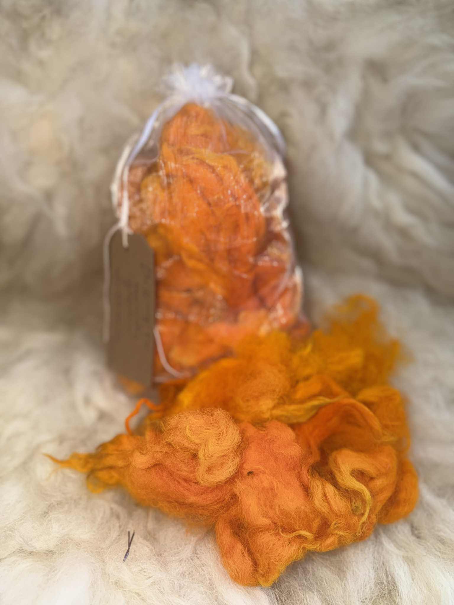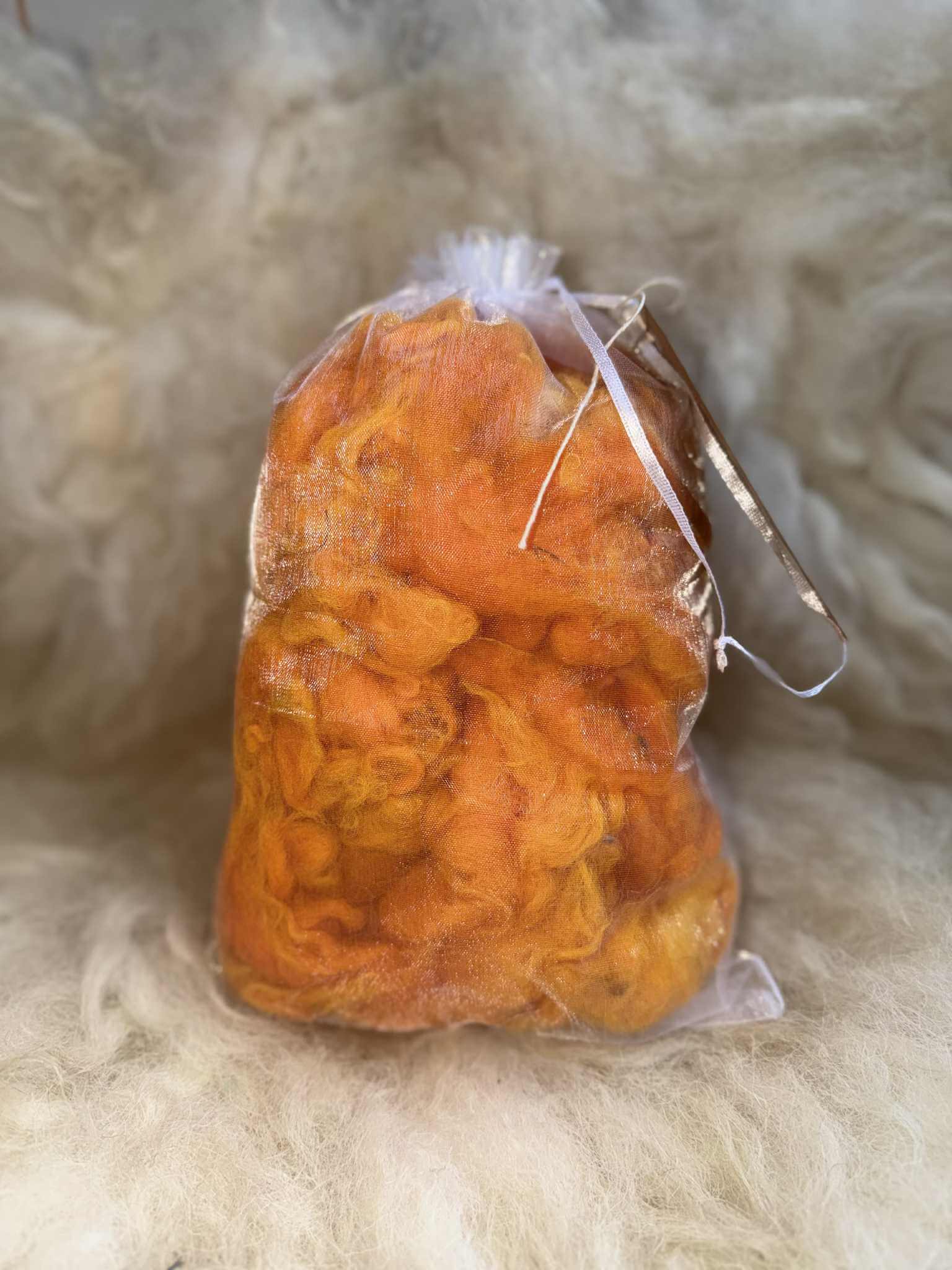 Our VEEGON™ hand dyed raw washed fleece is soft, clean, and full of natural character. This cruelty-free wool comes from the sheared fleece of our much-loved sheep (sheared for their welfare). Each 100g bag contains fleece from different sheep, so breeds may vary, giving every batch its own unique texture and feel.