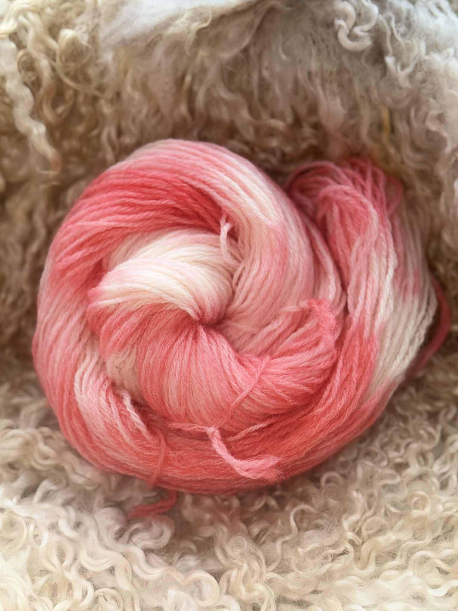 The skeins are made up from mixed flock fleeces, from our much loved sheep