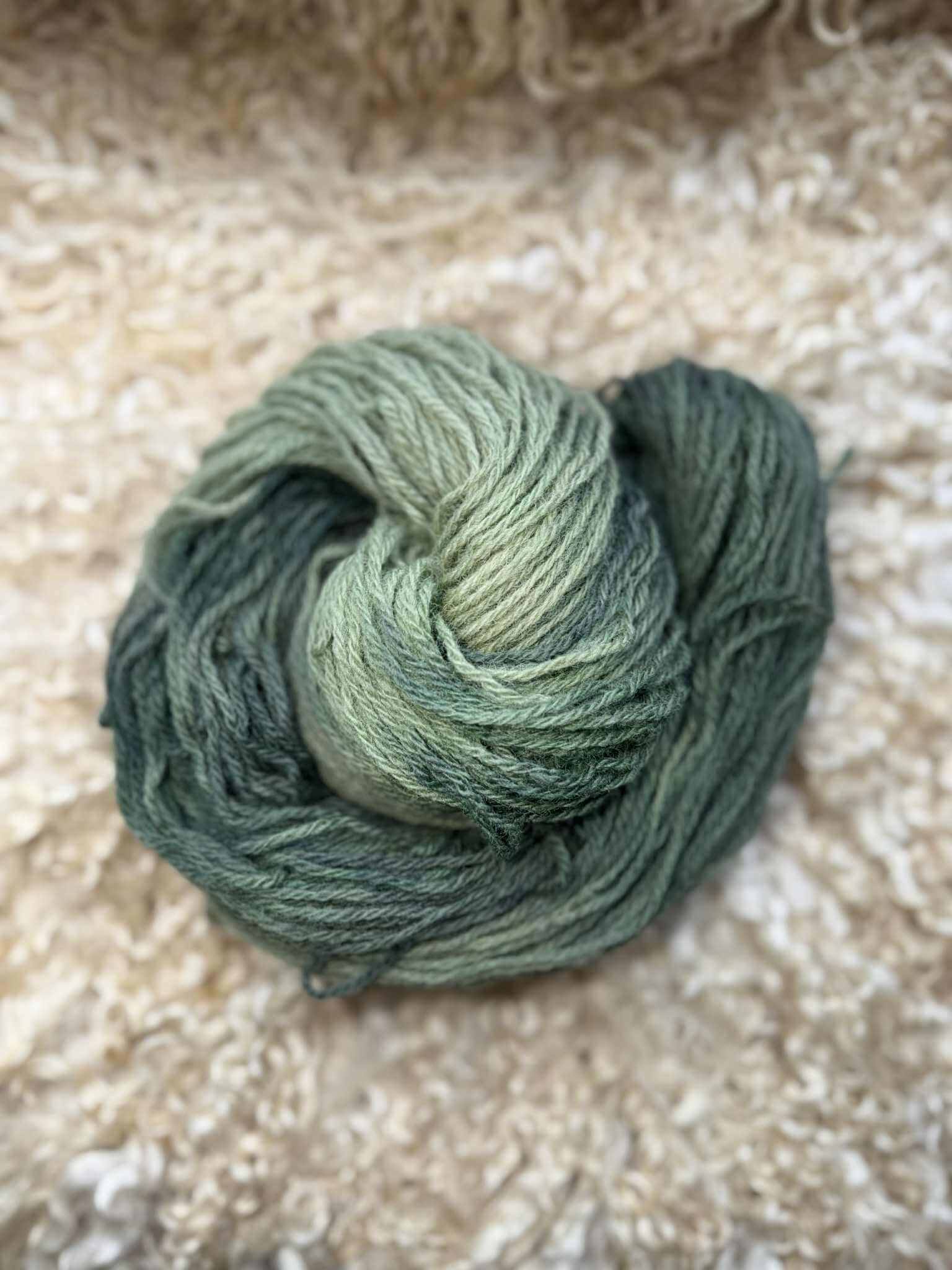 The skeins are made up from mixed flock fleeces, from our much loved sheep
