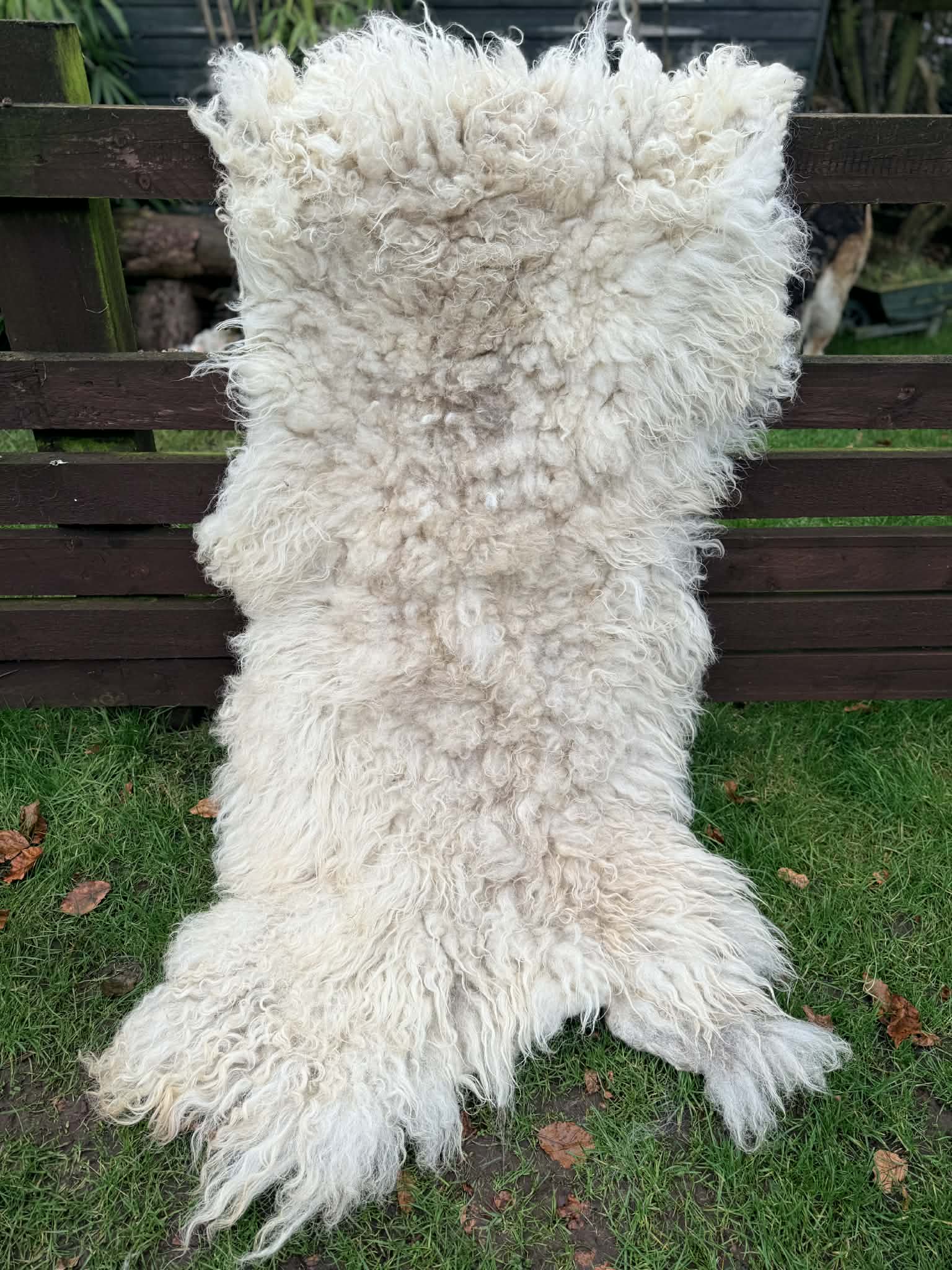 This rug is cruelty free, meaning its fully traceable back to the sheep that spent a year growing this fleece. (please note, felted fleeces online are not all fully traceable, just because it has no skin on the back like a sheepskin rug, does not mean that it did not die for meat etc )
