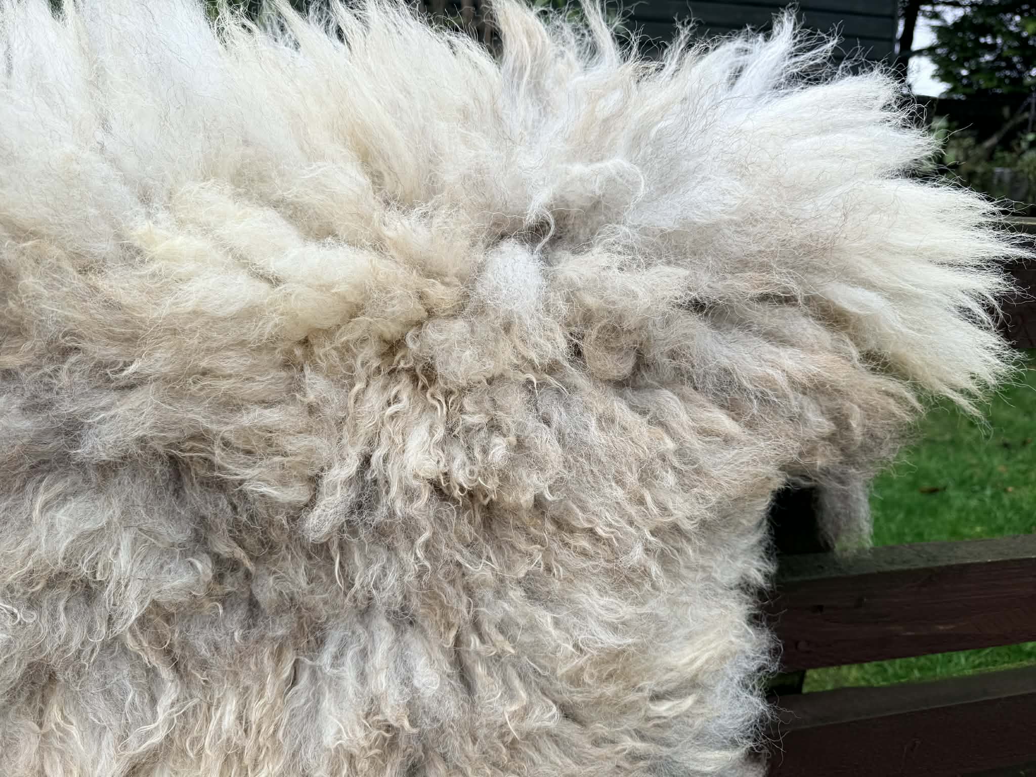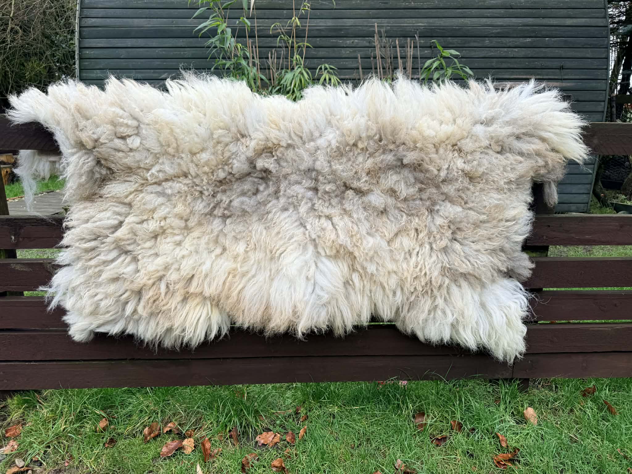 This rug is cruelty free, meaning its fully traceable back to the sheep that spent a year growing this fleece. (please note, felted fleeces online are not all fully traceable, just because it has no skin on the back like a sheepskin rug, does not mean that it did not die for meat etc )